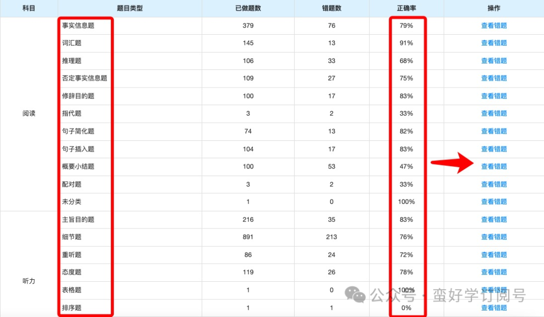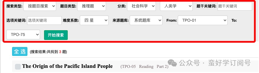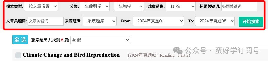 在蛮好学系统里,同学们可以根据细分查找选项,精准找到所需题型或目标类别的文章。