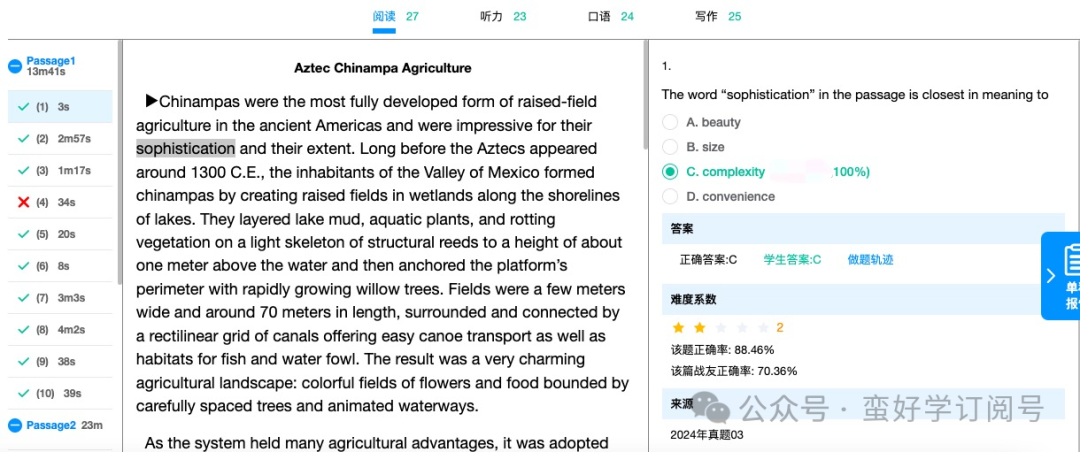 因此总的来说就是,TPO是让同学们习惯考试形式的材料,而真题则是考试高分的终南捷径。如果同学们想要缩短备考时间,那么蛮好学系统将是你的不二选择。