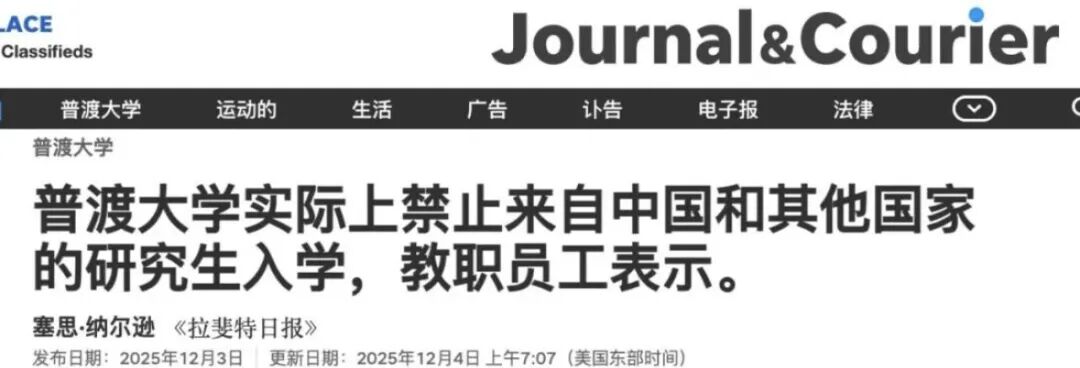 这两天看到一则来自官方的消息:美国工程强校—一普渡大学,正在“变相禁止”招收来自中国等国家的理工科研究生。